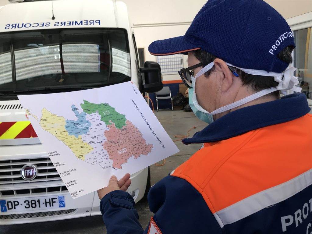 Pour faire face à l’épidémie de COVID-19 la Protection Civile de Vendée s’est vue confier par la Préfecture de Vendée la mission de distribuer 55 000 masques chirurgicaux dans 203 établissements recevant des personnes âgées (EPHAD, MARPA et maison de vie).